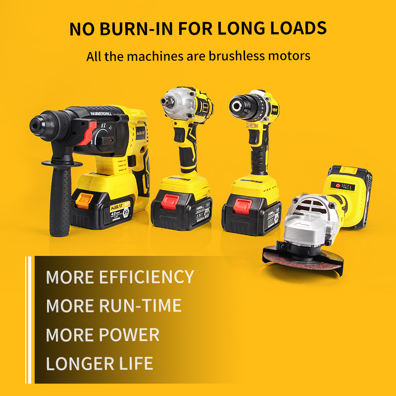 Multi-functional suit combination in one box which including Electric Wrench/Electric Drill/Electric Rotary Hammer/Angle Grinder,work together to make efficiency faster.