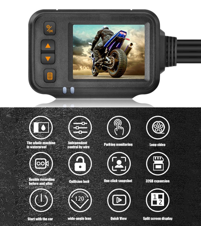 EKLEVA Full Body Waterproof Motorcycle Camera 720P HD Front Rear View Driving Recorder DVR Dash Cam Logger Recorder Box