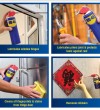 WD-40® Multi-Use Product lubricates moving parts such as hinges, wheels, rollers, chains and gears. It protects against rust and corrosion on items like tools and sporting equipment. It penetrates to free stuck corroded parts like nuts, bolts, valves and locks. It quickly removes adhesives, corrosion and paint. It displaces moisture to restore water flooded equipment such as engines, spark plugs and power tools.