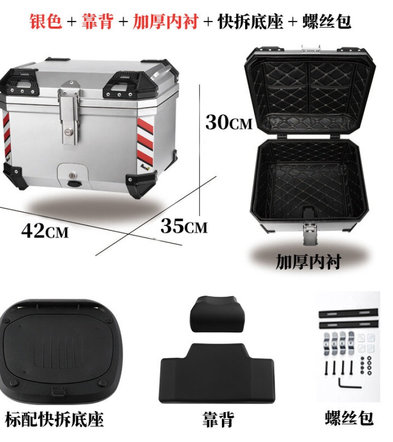 ABS尾箱45l大容量摩托车滑板车电动车工具箱快拆大型非铝合金尾箱