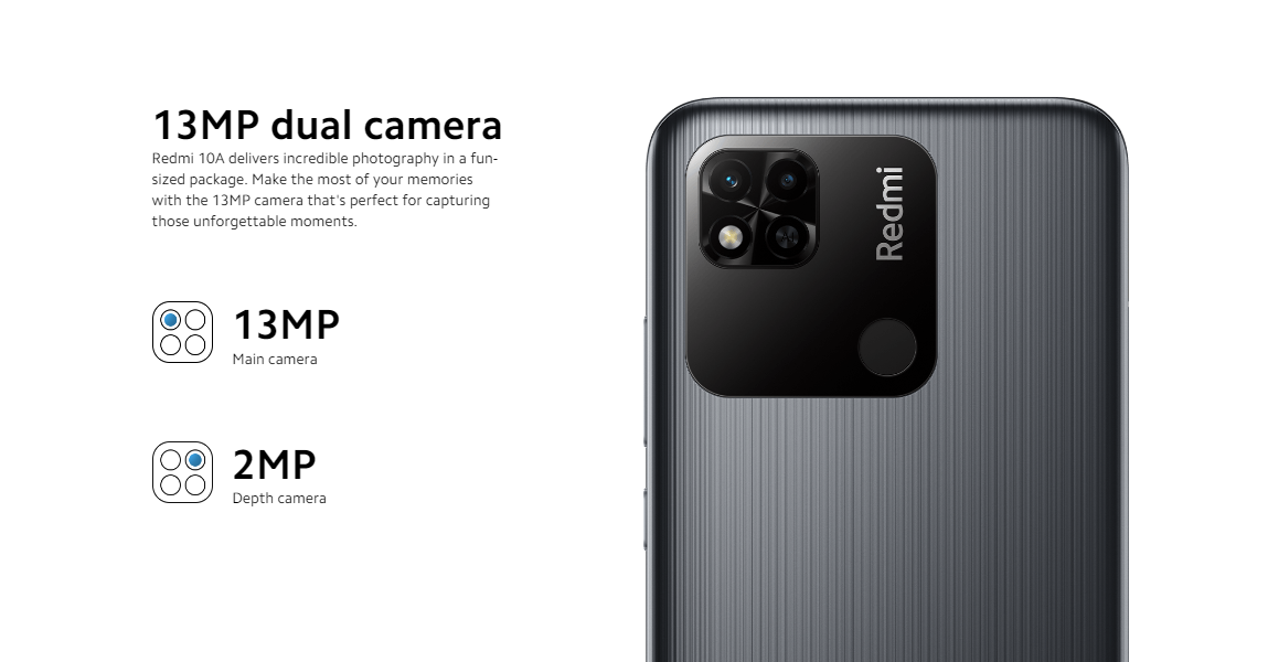 Redmi 10A comes with a dedicated microSD card slot and support up to 1TB expandable storage, store your precious photos and videos with ease.