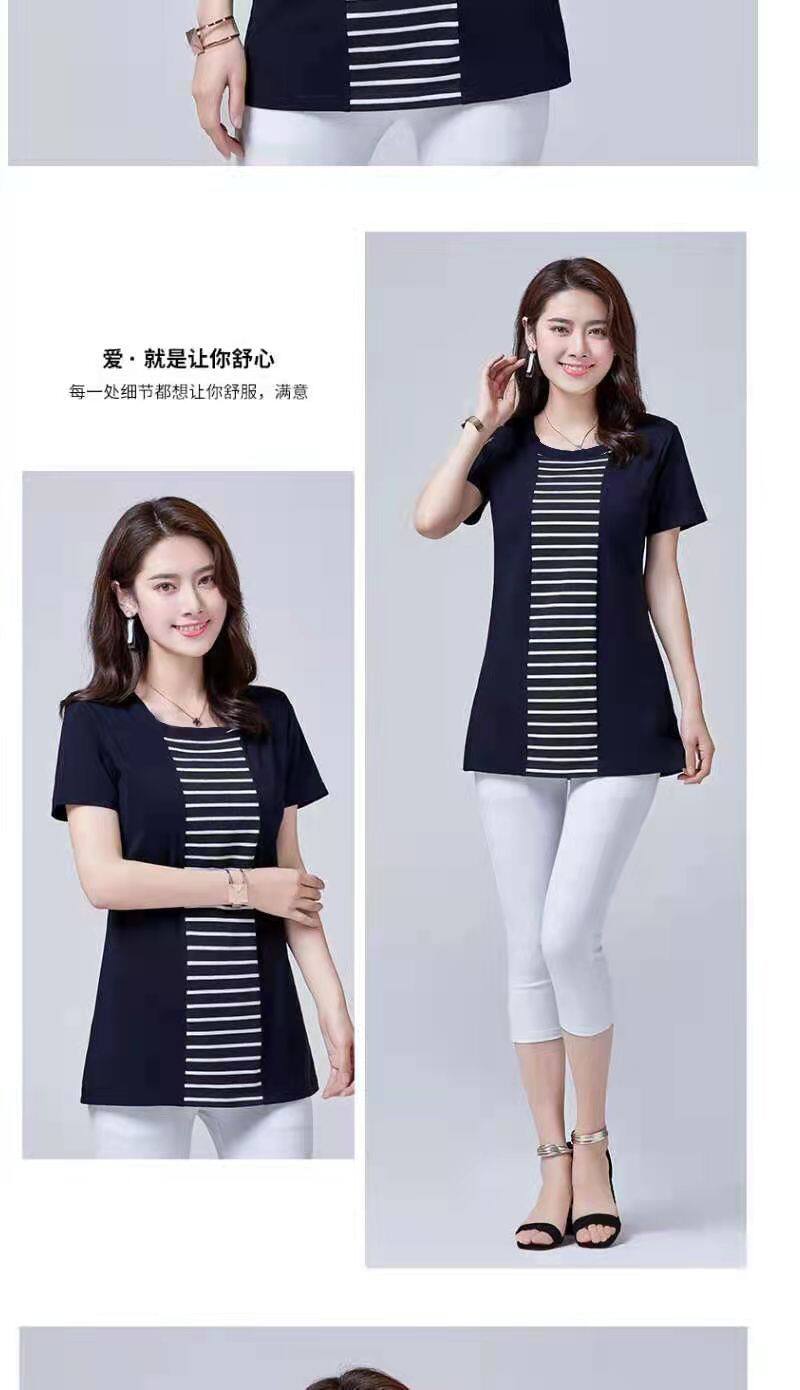 100KG胖女可穿2022新款韩式条纹长袖T恤女式短袖加大码盖腹圆领时尚T恤连衣裙优雅衬衫女式T恤