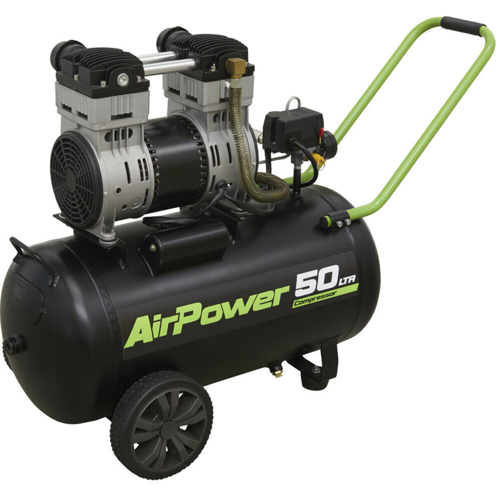 50L Direct Drive Air Compressor - Low Noise 1.6hp Motor - Twin Gauge Display