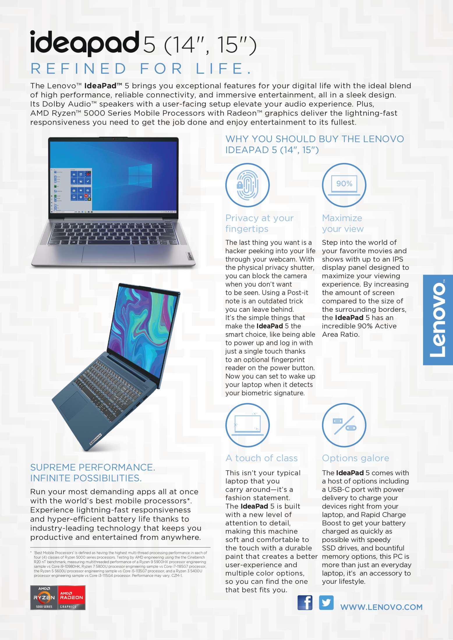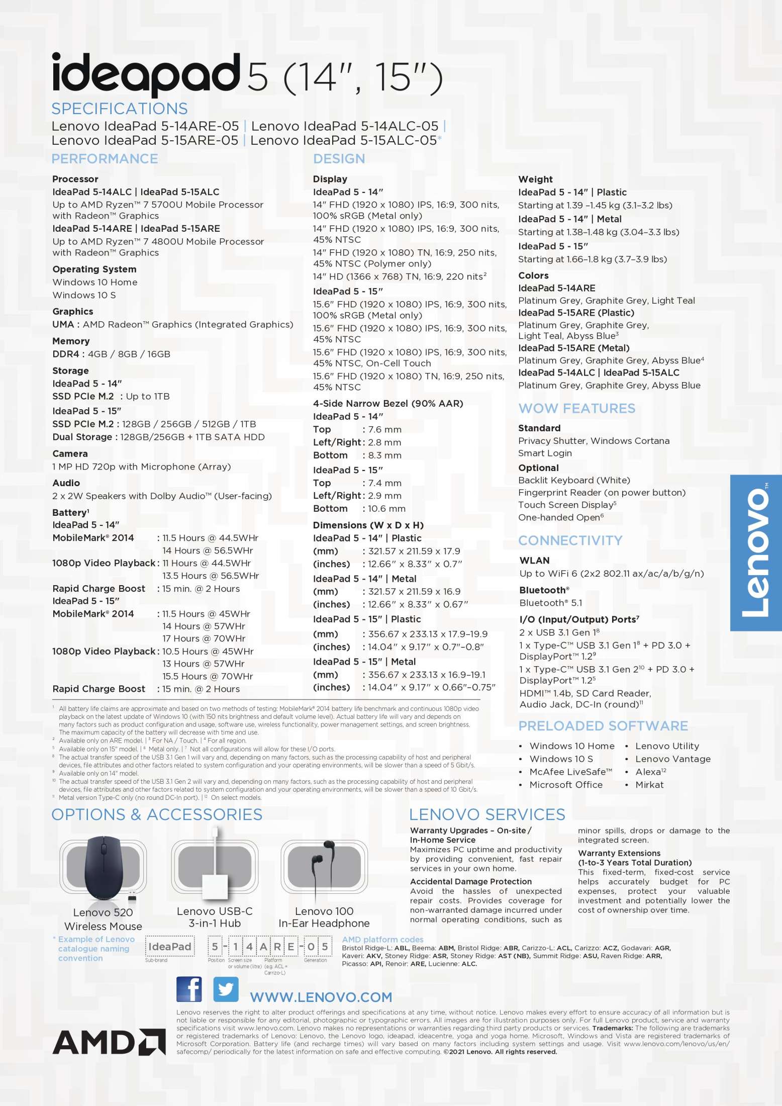 联想IdeaPad 5 14ALC05 | 14英寸全高清(1920x1080)300尼特| AMD Ryzen 5 5500U | 16GB RAM | 512GB SSD | 1.39Kg |石墨灰颜色| Win 11 Home | 1Y高级护理